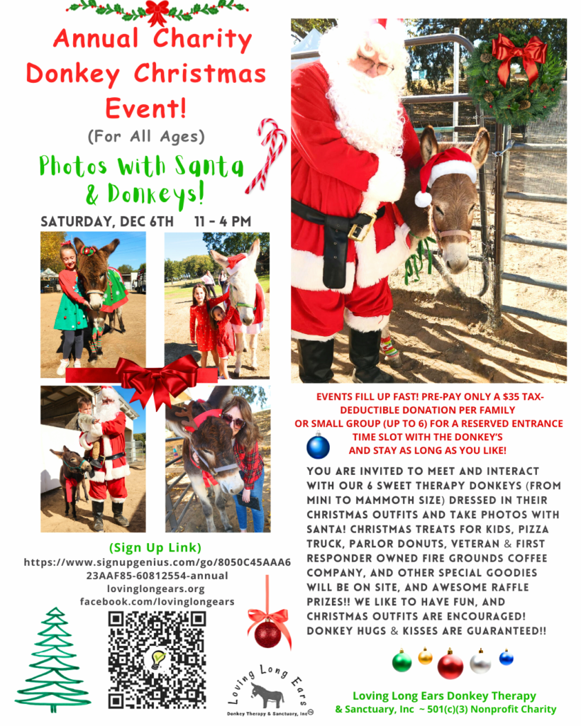 Reserve Your Event Time (Our Holiday Events Fill Up Fast) Visitor Liability Release Form Photo & Video Release Form Please download, print, and bring in the forms with you on the day of the event Alternatively, all forms can be emailed to: lovinglongears@yahoo.com prior to the event.